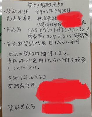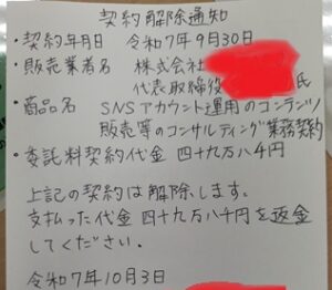今回のクーリングオフ(契約解除)の大事なポイントとしては、